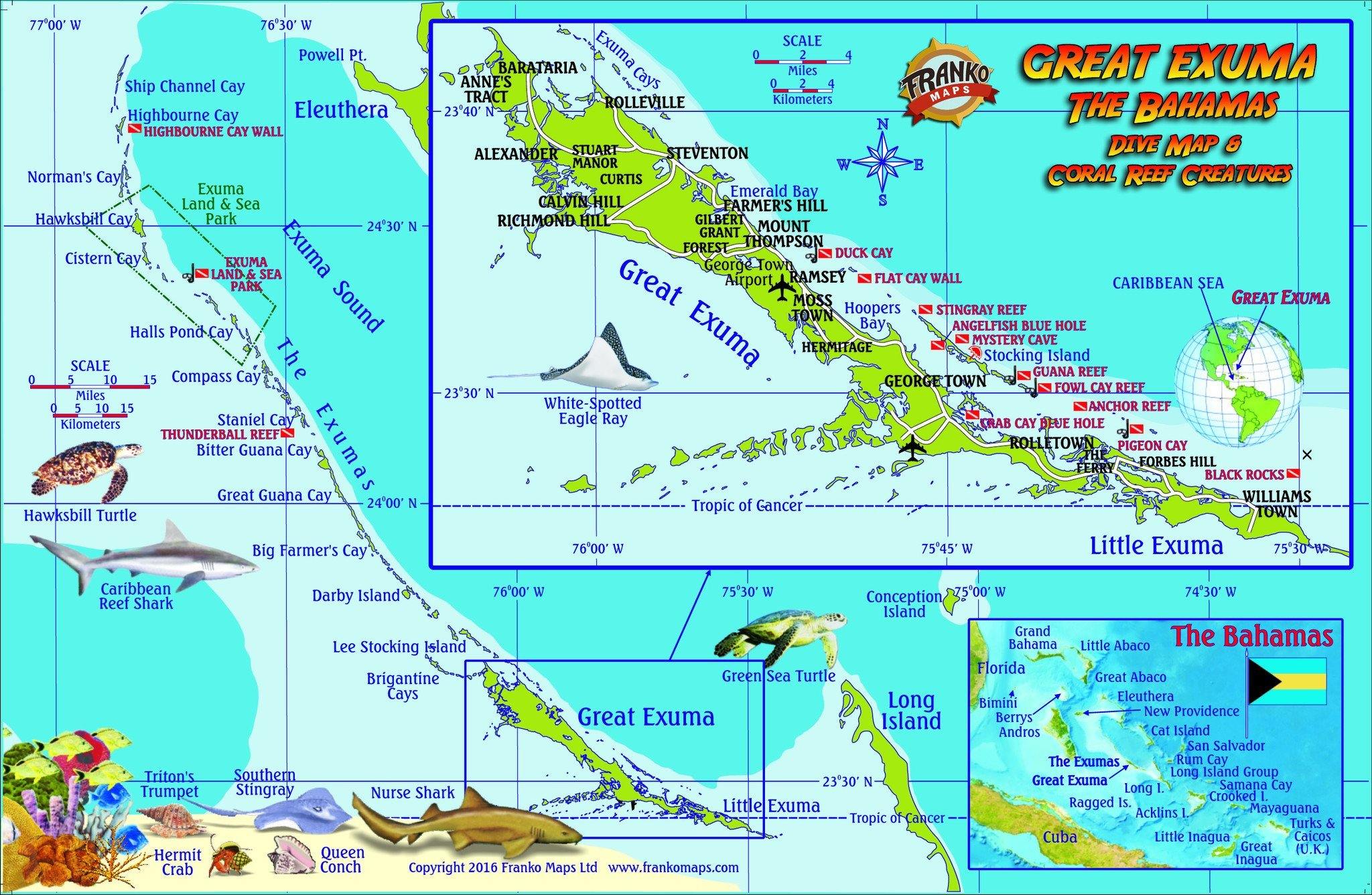 Great Exuma Bahamas Dive Map & Reef Creatures Amazon.co.jp